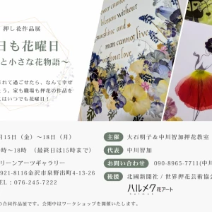 この度、「なでしこの会」初代メンバーによる押し花アート展を開催することになりました。結成から25年。これまで続けてこられた感謝の...