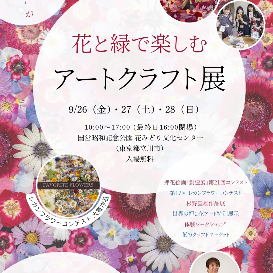 一般社団法人 世界押花芸術協会は9月26日(金)から28日(日)まで、国営昭和記念公園(東京都立川市)で「花と緑で楽しむアートク...