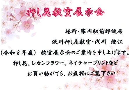 展覧会の内容 「押し花」「レカンフラワー」「NPクラフト」「フラワーアレンジメント」「ブリザーブドフラワー」を展示いたします ■...