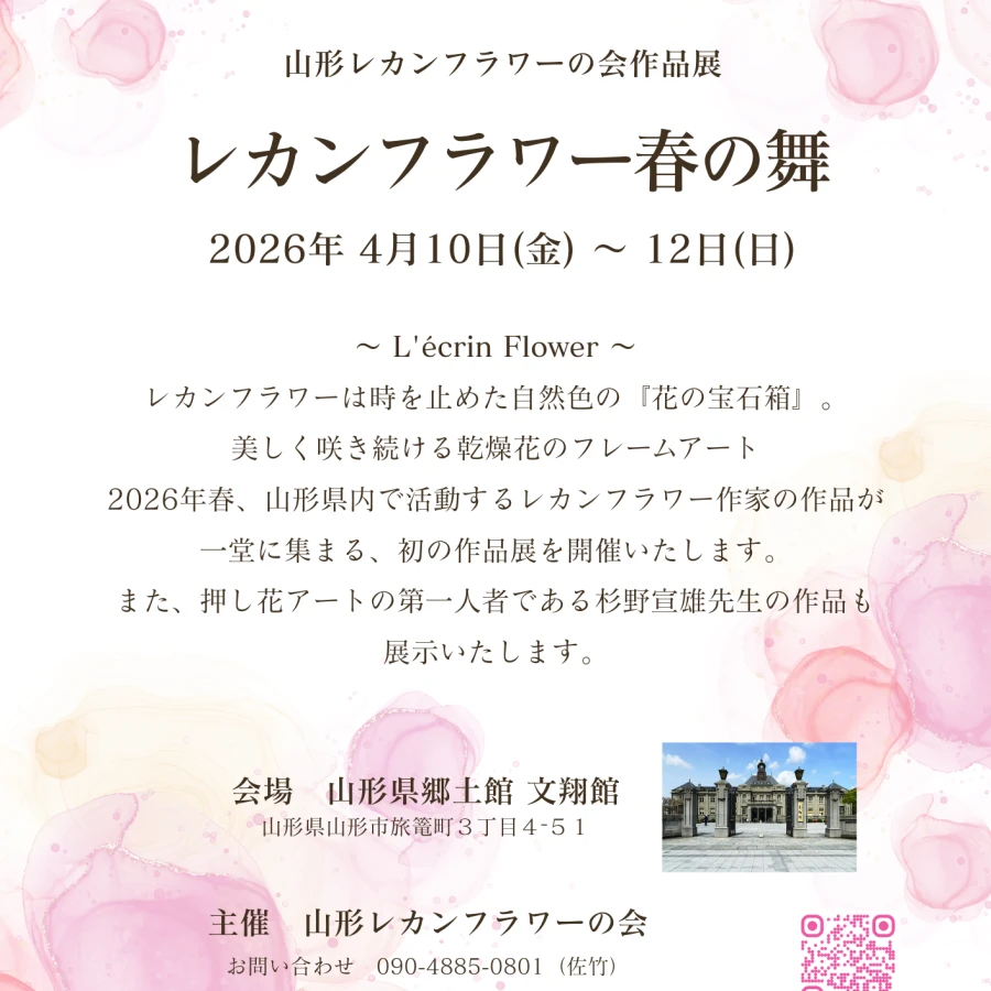 2026年春、山形県内で活動するレカンフラワー作家の作品が一堂に集まる、初の作品展を開催いたします。 入場無料会期:2026年4...