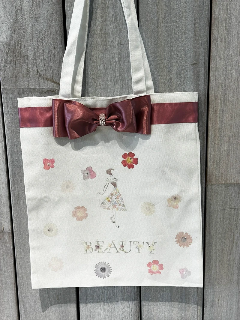 お花満開のトートバックができました!リボンにこだわりってみましたがいかがでしょうか!