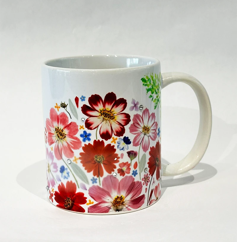 秋の夜、月明かりに照らされたコスモスの花畑。そこにはキラキラと光をまとい、そっと微笑む妖精たちの姿。見るたびに心がときめくマグカップです。