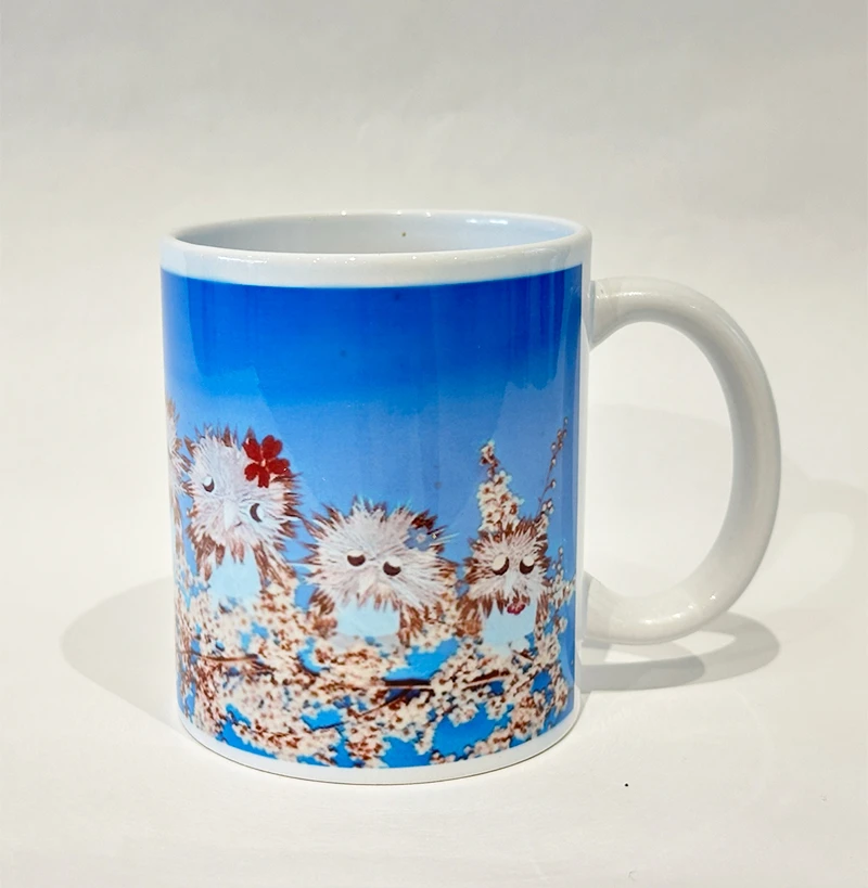 押し花で作ったお気に入りの押し花額「仲良しふくろう」をオリジナルSDシートにして私だけのマグカップを作りました。7羽の表情豊かな福を呼ぶふくろうに癒され日常も楽しくなります。
