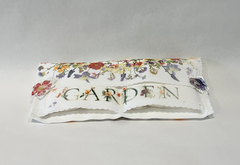 作業用クロスでキューブ型小物入れを作り、花いっぱいの庭をイメージして押し花プリントしました。裏生地を変えたので、上手くプリント出来ず少し残念です。大きさや押し花プリントを変えて、いろいろ楽しみます。