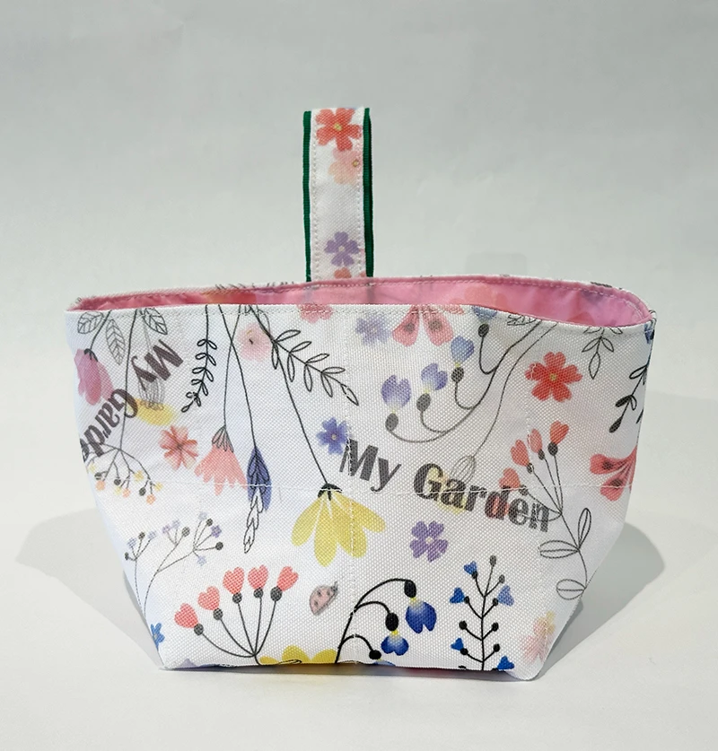 近くのコンビニへお財布と携帯電話が入れて、ちょっとそこまで…。花畑の可愛い布パックがで来ました。