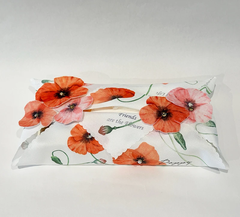 作業用クロスの縁取りが可愛いのでその部分を作品に使いたい!と思いティッシュケースを作ってみました。ポリエステルのフェルトにも転写して立体感を表現しました。楽しみながら制作出来ました。