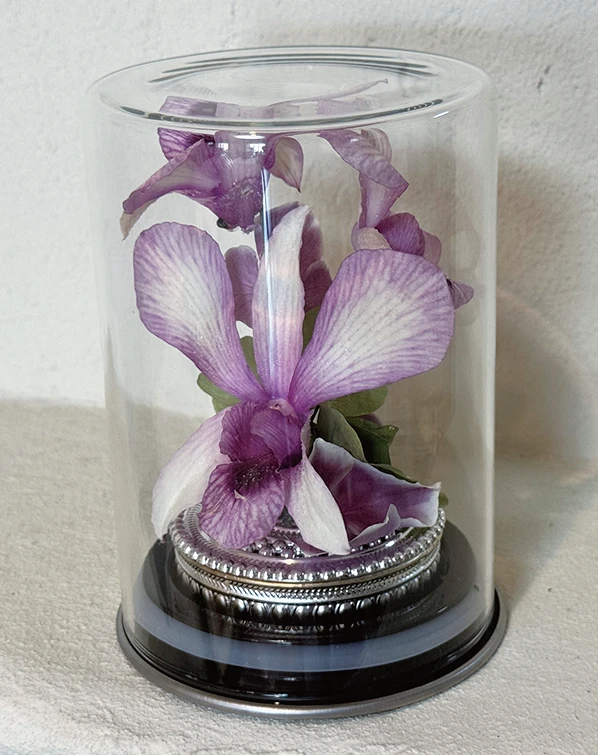 ボウル状のグラスとガラスの蓋はUV接着剤で貼り付けて密封します。