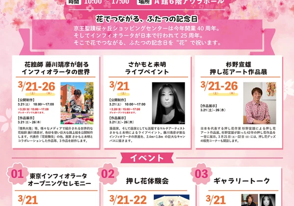 東京・吉祥寺の 武蔵野市立吉祥寺美術館市民ギャラリーAにて、講師・三宅美子とアトリエMiyakeメンバーによる押し花展示会が開催されます。