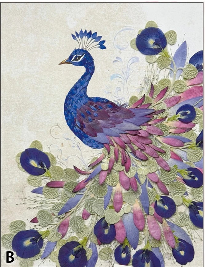 私の押し花アートは、天然の色彩を長く保つ独自の技法により、植物本来の美しさと命の輝きをそのまま留めることを目指しています。それは...